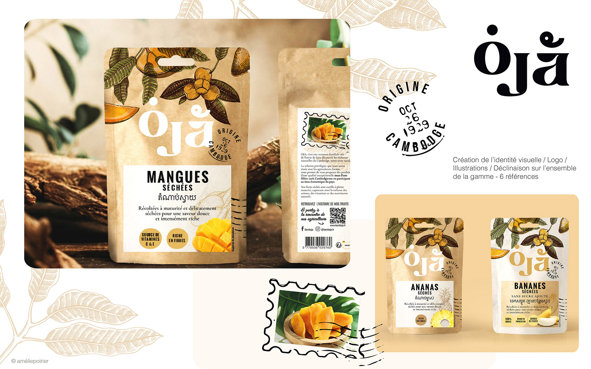 Création de l’identité visuelle globale d'une gamme de fruits séchés du Cambodge