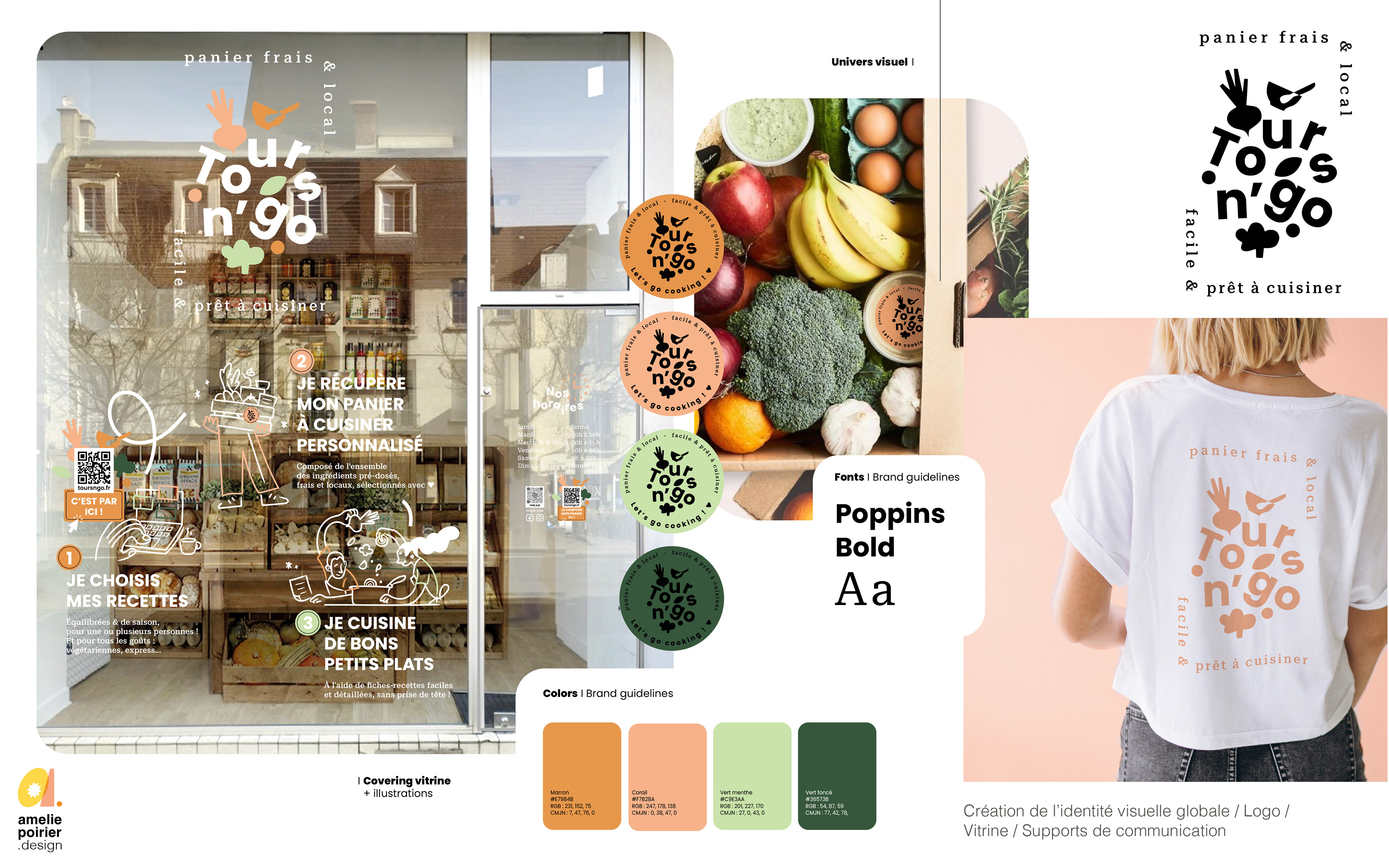 Création de l'identité visuelle globale d'une enseigne proposant des paniers repas frais & locaux, prêts à cuisiner.